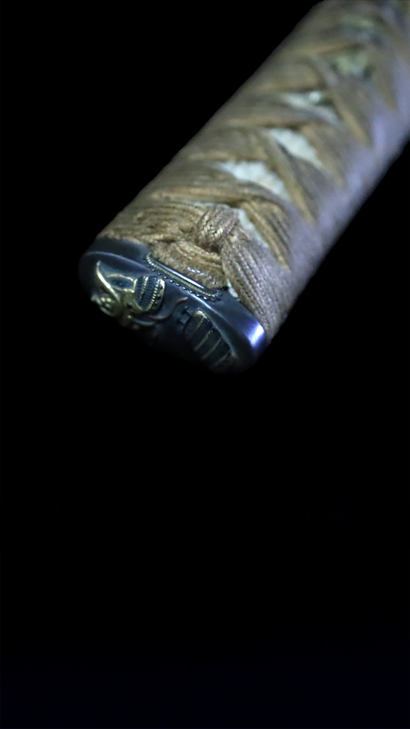 • Fuchi-kashira: Featuring a samurai helmet (kabuto) motif, symbolizing strength and honor